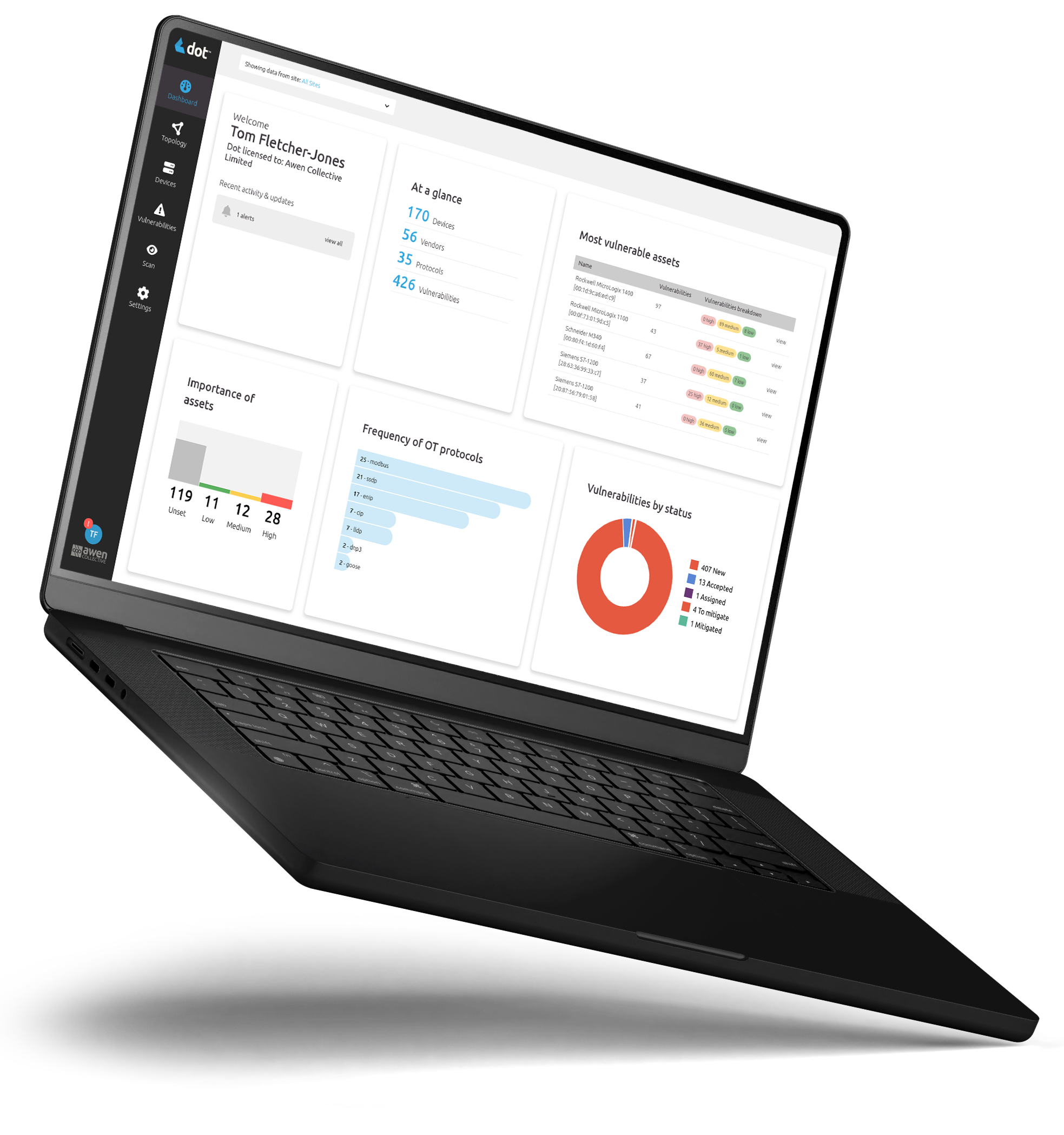 Dot performs Asset & Vulnerability Discovery on Operational Technology. Built using security-by-design and safety-critical scanning technology to support modern and legacy networks, using exclusive active scanning software to build a full picture of your network.